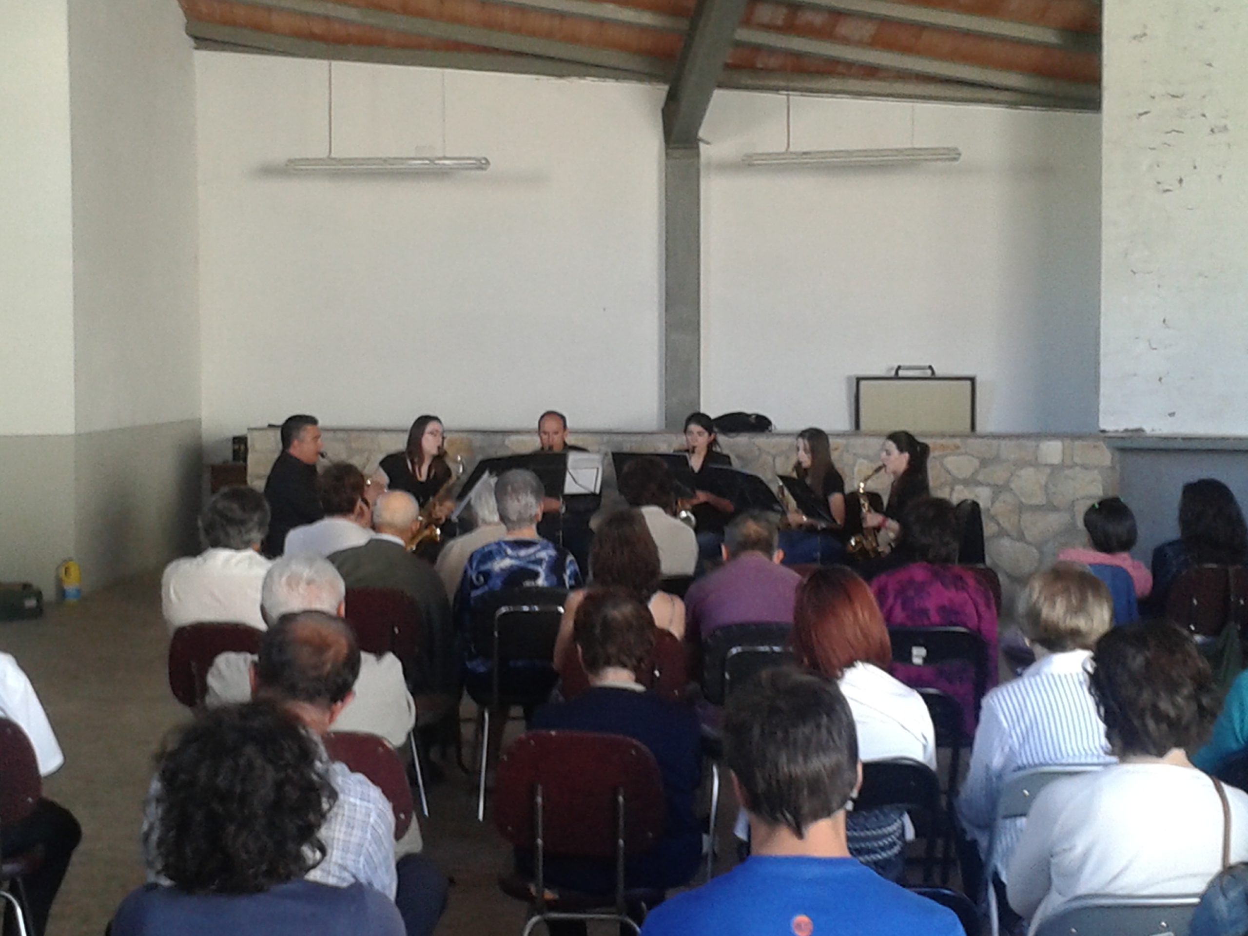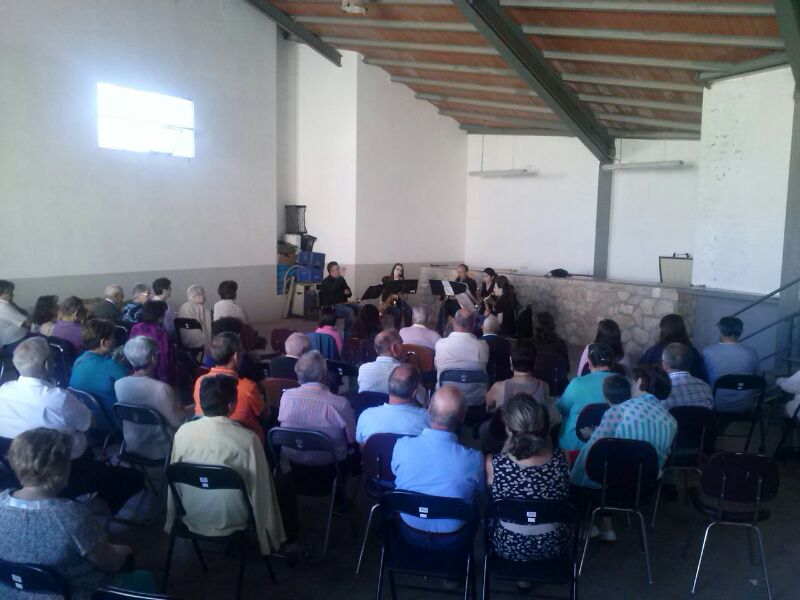 El magnífico concierto, que alternó todo tipo de música (boleros, jotas, clásica…) fue interpretado por un sexteto de saxos pertenecientes a la Escuela Municipal de Música de Monreal del Campo, con su director Luis Martín a la cabeza. Según sus propias palabras fue la primera vez que como sexteto de saxos, es decir sin el resto de la banda, daban un concierto.