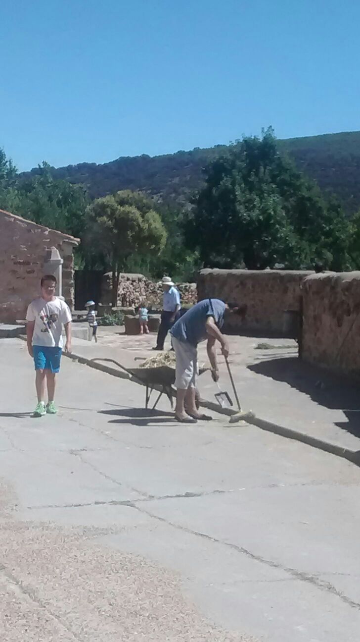 Durante la mañana del 24 de Agosto se limpiaron las calles del pueblo y las alcantarillas; también se arregló el mobiliario urbano de algunos locales como los bancos de la iglesia que tenían carcoma, se limpió el horno, se arregló y pintó su puerta y se limpiaron y pintaron los cuatro pairones que muestran las entradas a nuestro pueblo.