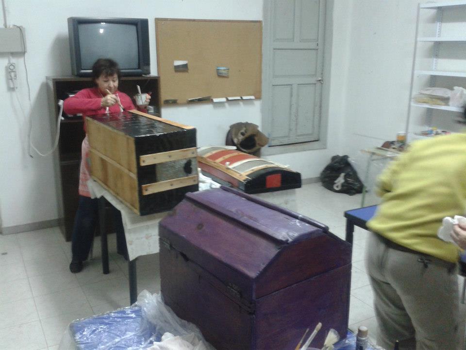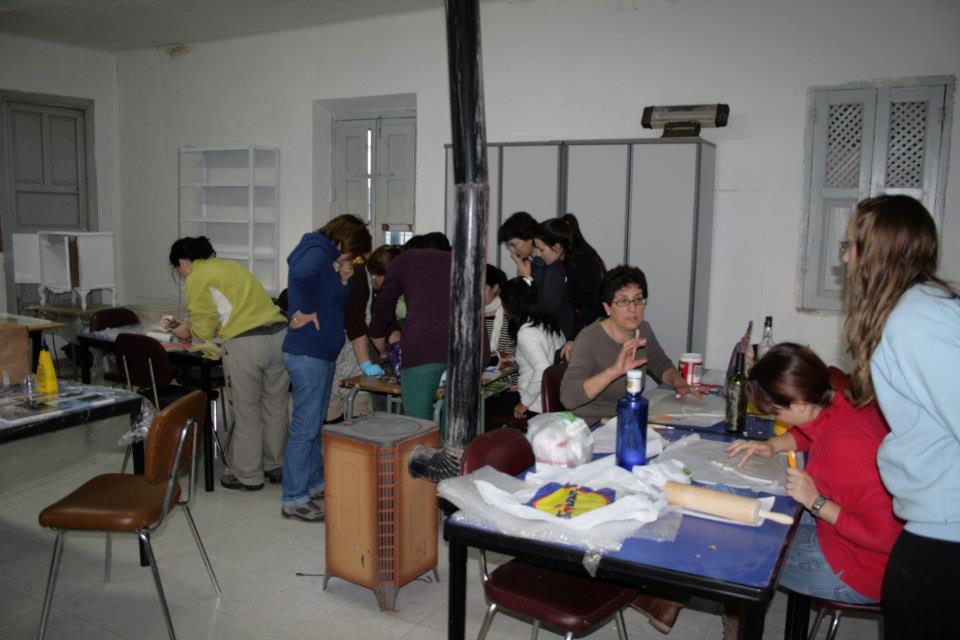 Durante los meses de Octubre 2012 a Enero 2013, Alicia Martínez nos ha impartido un taller de artesanía en el que se ha trabajado, entre otros, restauración de muebles y piezas de escayola, realización de meninas con pasta dash, creación de abalorios mediante el reciclaje de otros materiales como cápsulas de nesspreso o el abre fácil de latas de refrescos…