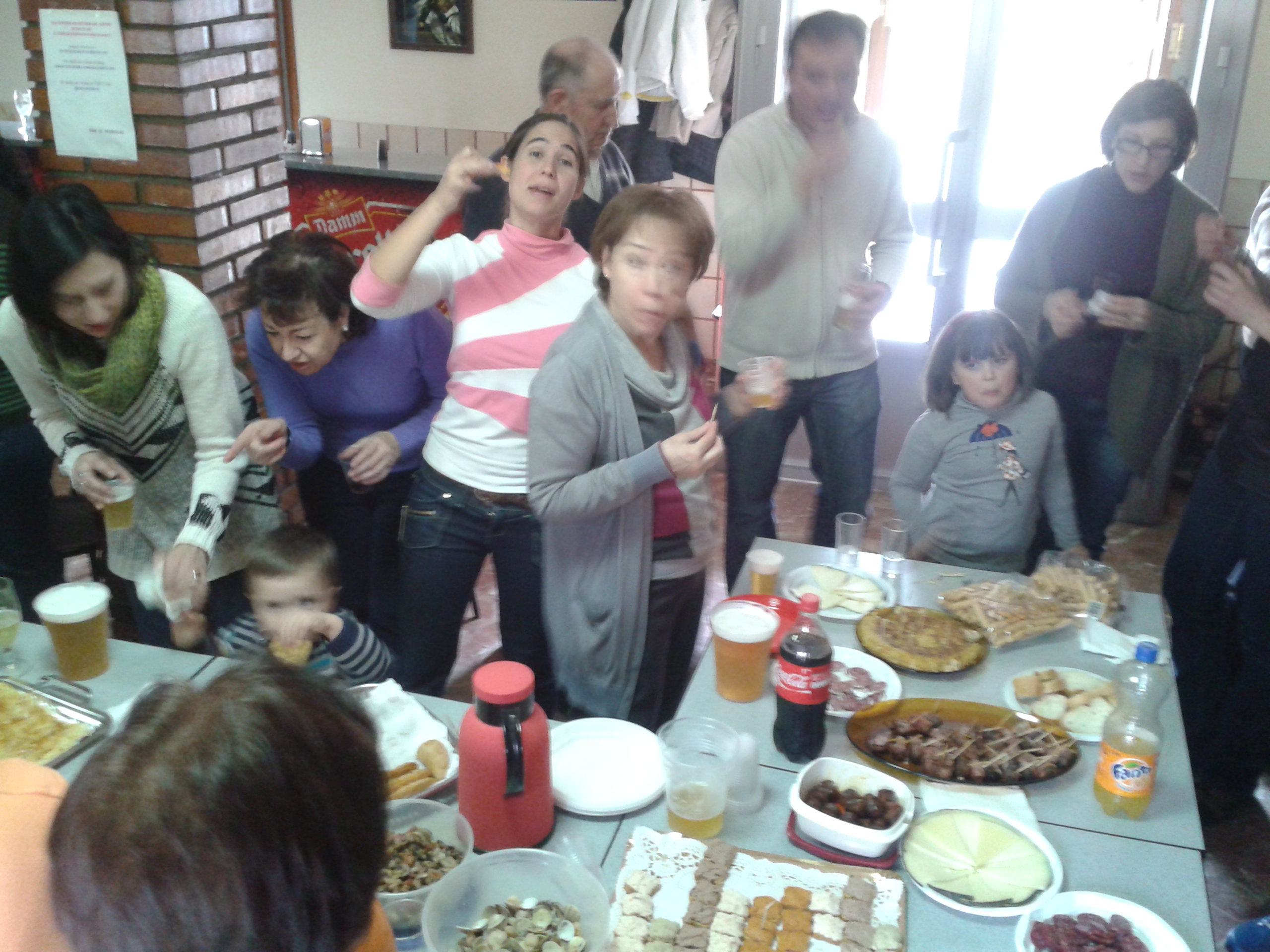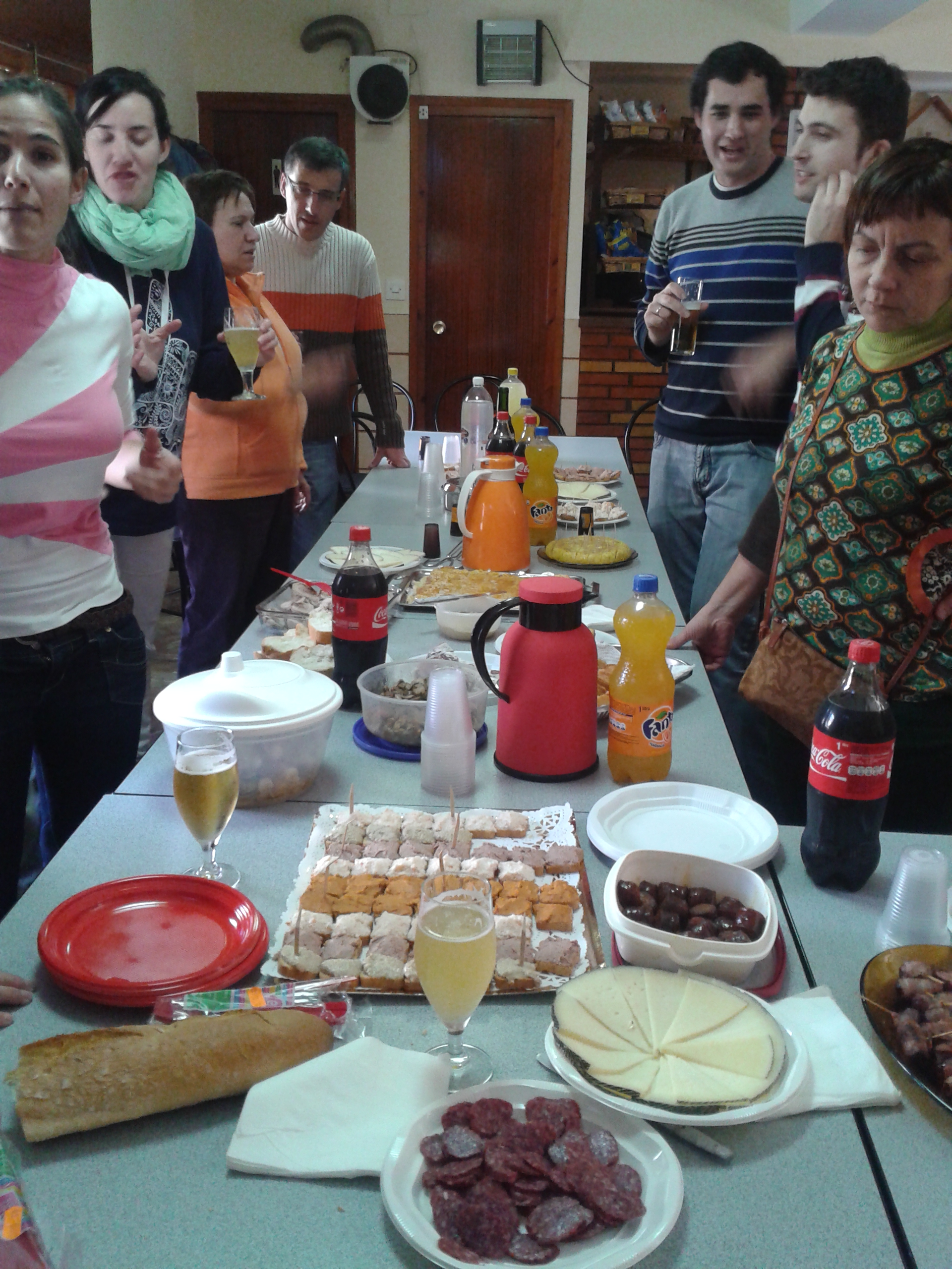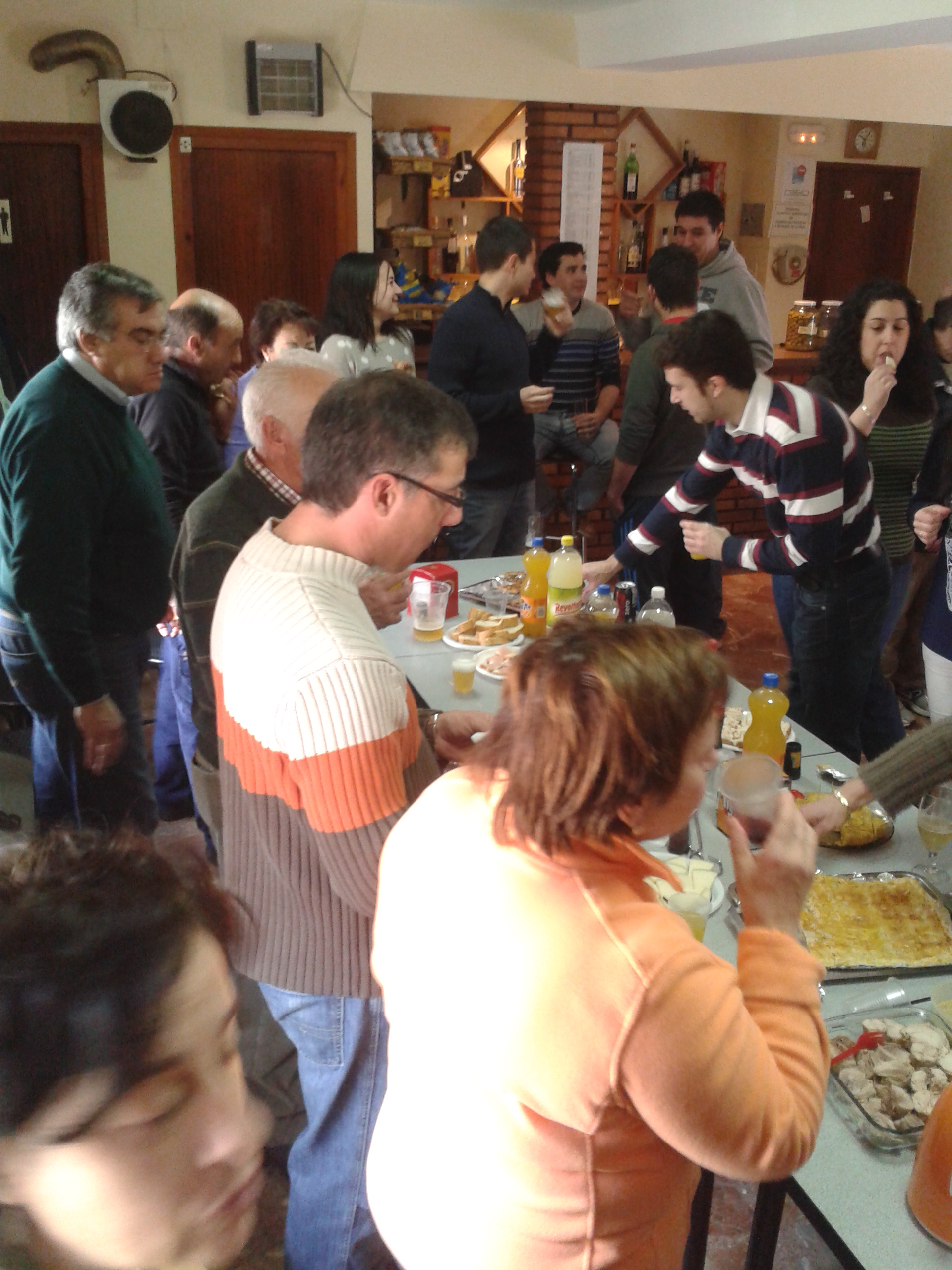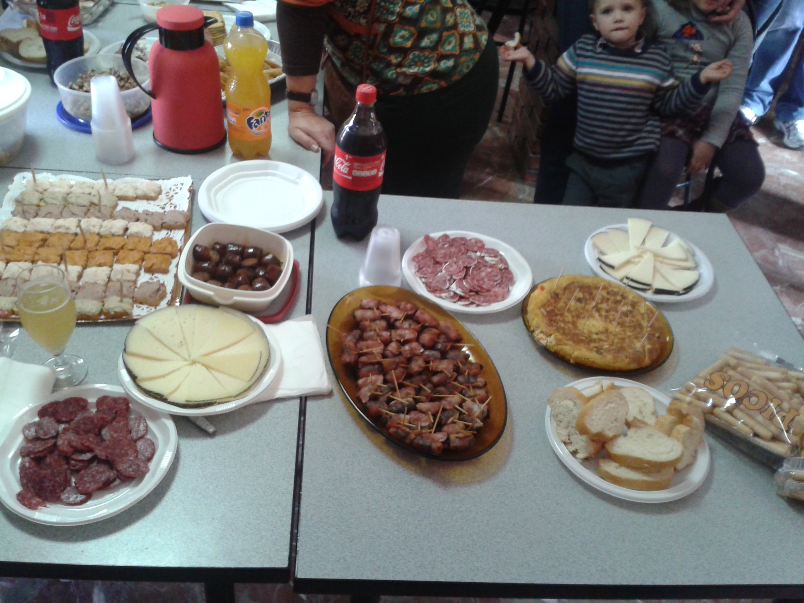 Este año quisimos cambiar un poco y decidimos celebrar el primer Vermú Torero para dar la bienvenida a las fiestas navideñas. Quedamos a las 13:45 horas en el bar y allí descubrimos la buena cocina que tenemos en nuestro pueblo, todos los asistentes pudimos picar y degustar los platos que unos y otros habíamos llevado para compartir y pasar así un buen rato riendo, charlando sobre esto y aquello … Después del café, como manda la tradición en nuestro pueblo, unos se marcharon a preparar para encender la hoguera mientras otros se fueron a recoger leña cantando villancicos por todas las casas que en ese momento estaban abiertas, recibiendo, además de su colaboración, dulces y unas cuantas sonrisas. Lo teníamos todo preparado, pero…la climatología nos impidió prender fuego a la hoguera, eso sí, ¡la encendimos en Nochevieja!