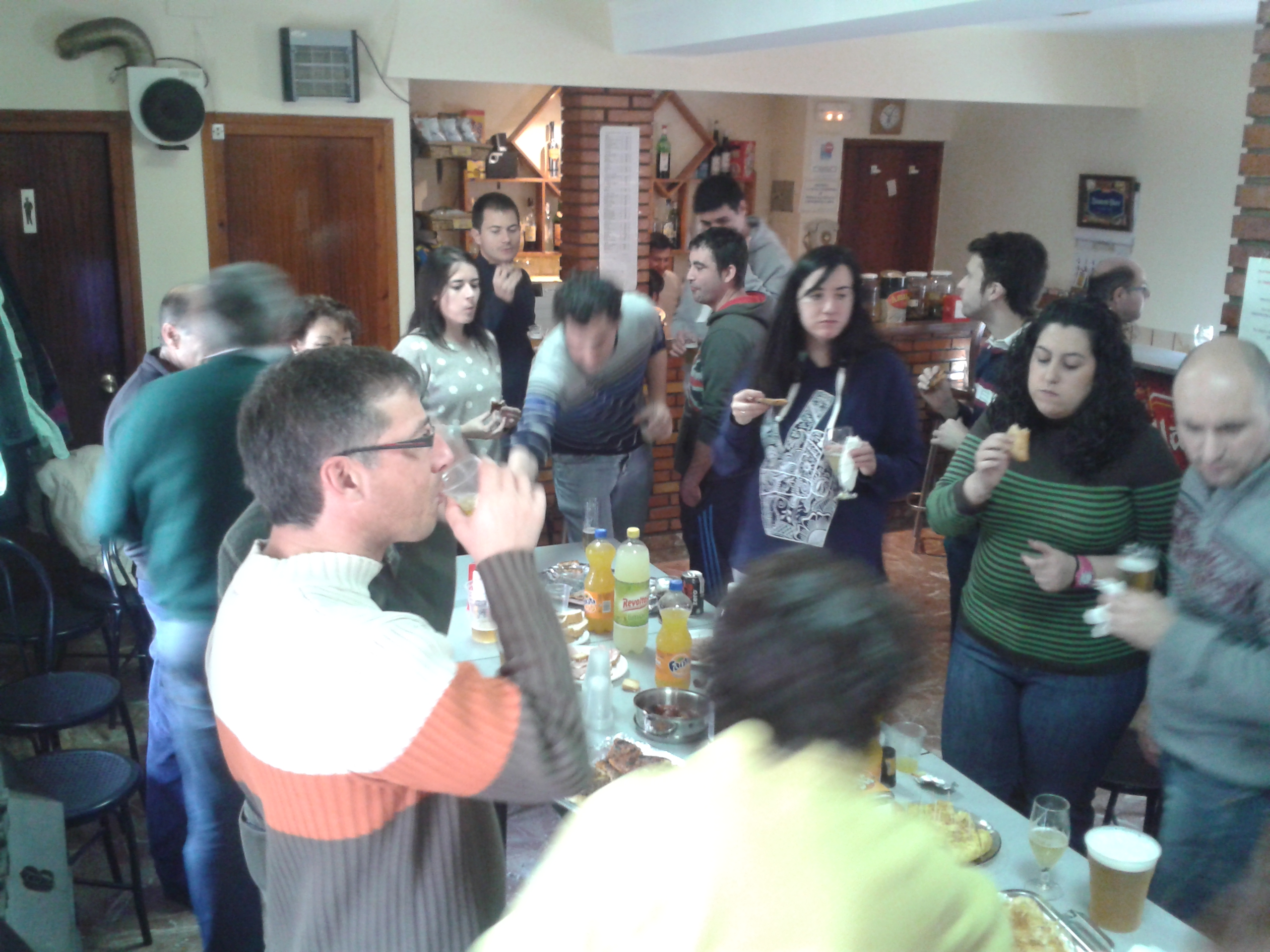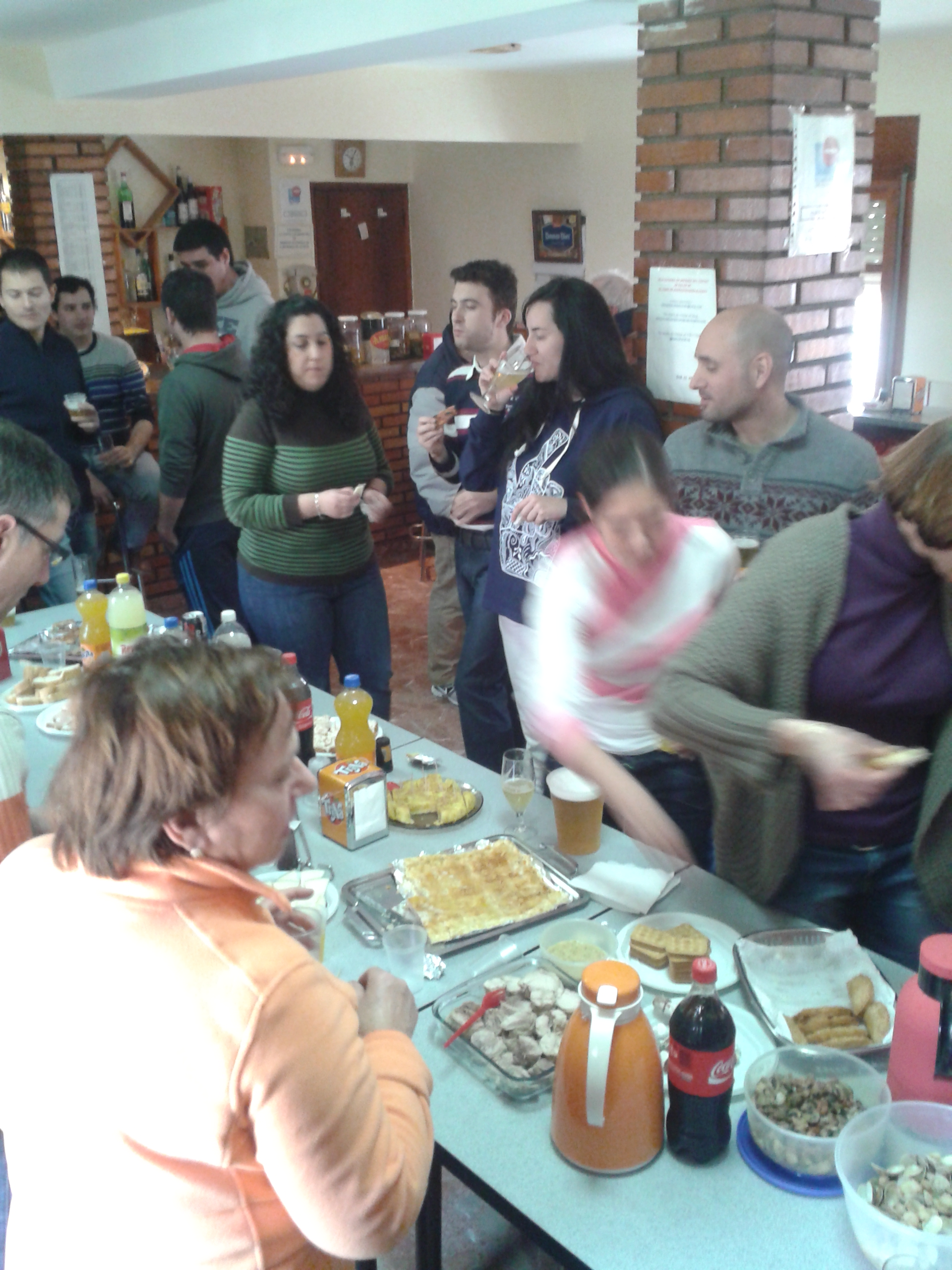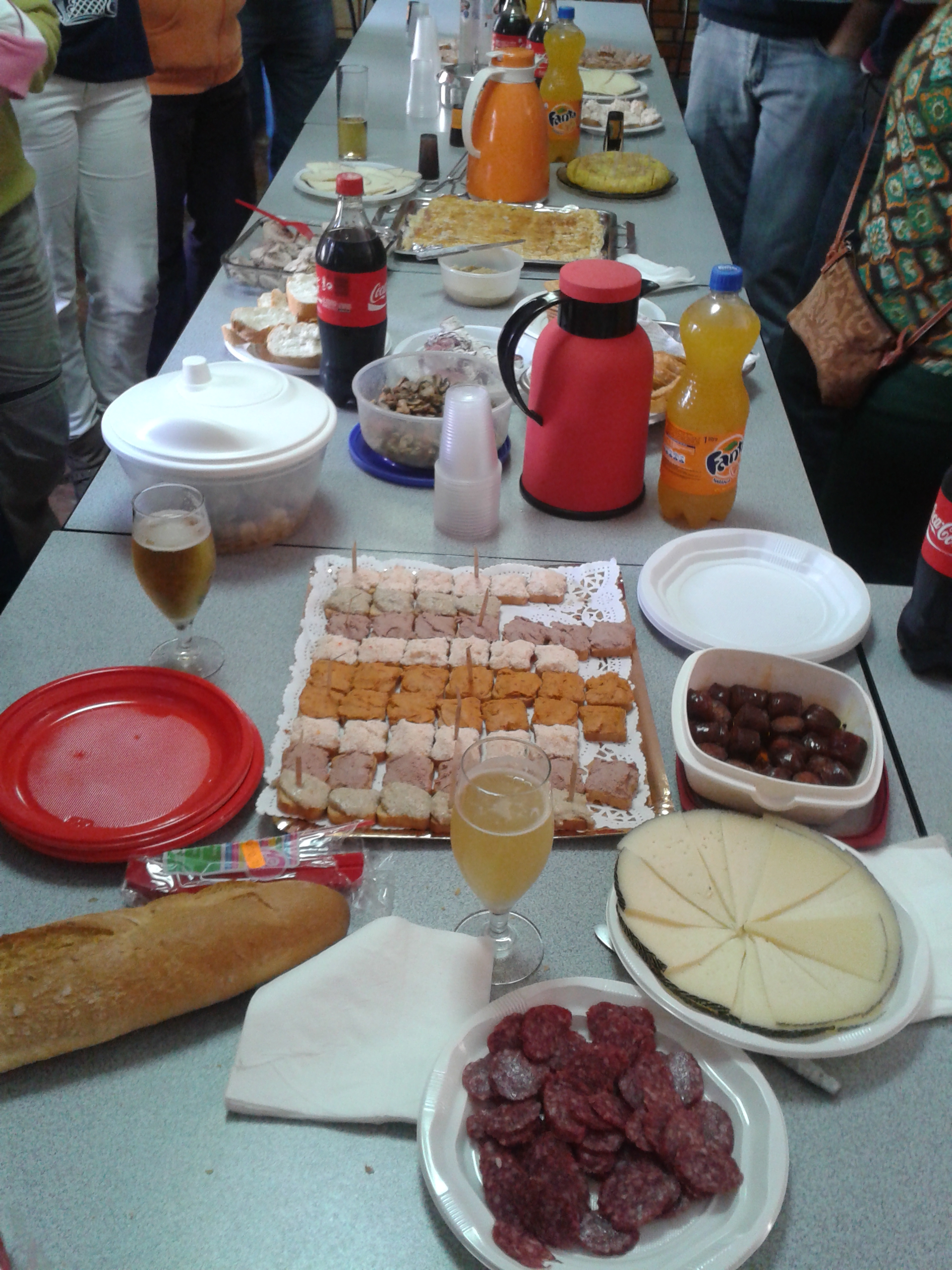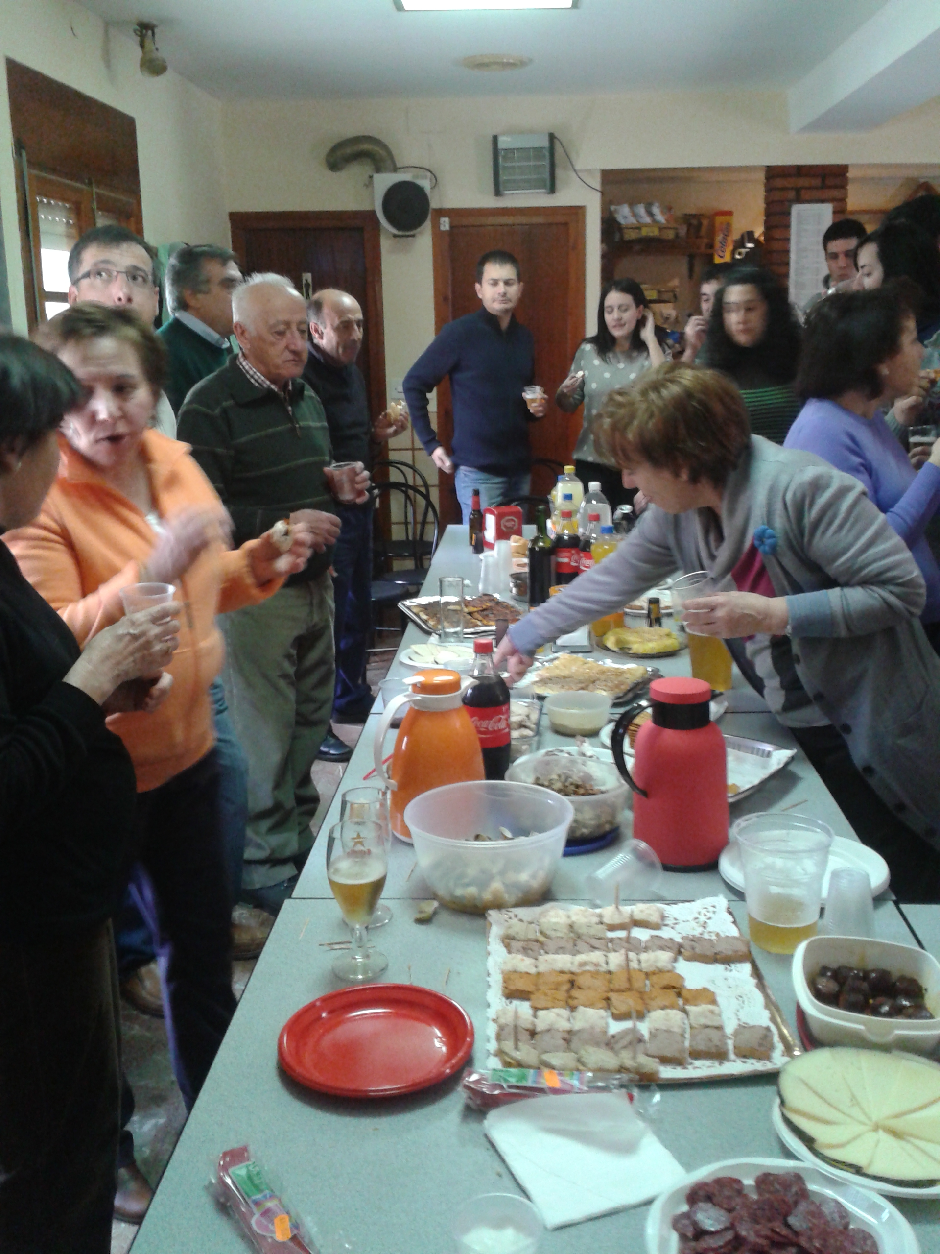 Este año quisimos cambiar un poco y decidimos celebrar el primer Vermú Torero para dar la bienvenida a las fiestas navideñas. Quedamos a las 13:45 horas en el bar y allí descubrimos la buena cocina que tenemos en nuestro pueblo, todos los asistentes pudimos picar y degustar los platos que unos y otros habíamos llevado para compartir y pasar así un buen rato riendo, charlando sobre esto y aquello … Después del café, como manda la tradición en nuestro pueblo, unos se marcharon a preparar para encender la hoguera mientras otros se fueron a recoger leña cantando villancicos por todas las casas que en ese momento estaban abiertas, recibiendo, además de su colaboración, dulces y unas cuantas sonrisas. Lo teníamos todo preparado, pero…la climatología nos impidió prender fuego a la hoguera, eso sí, ¡la encendimos en Nochevieja!