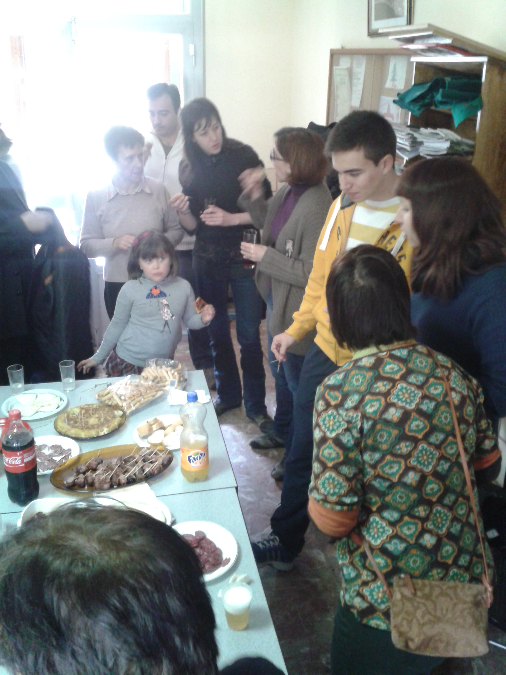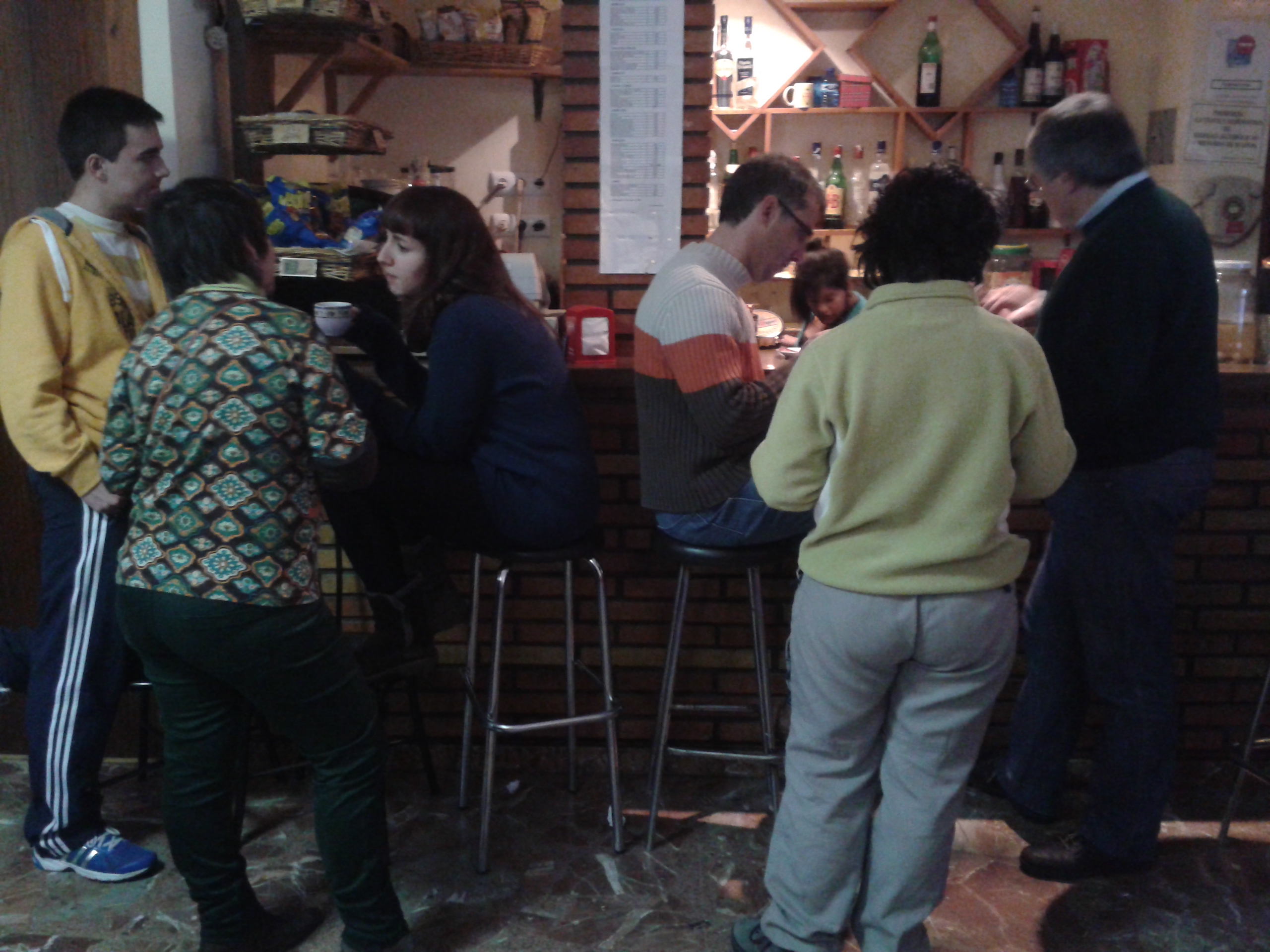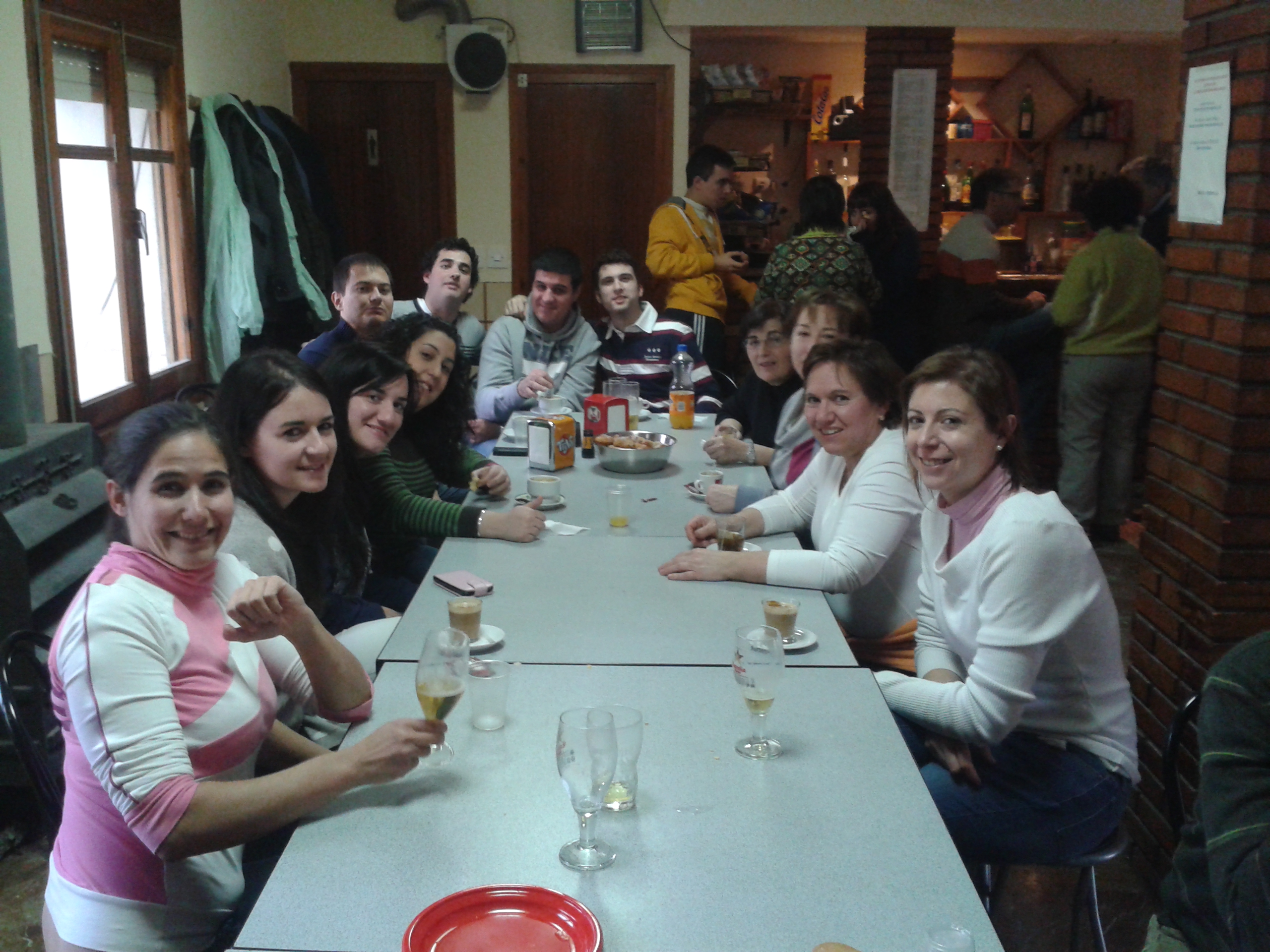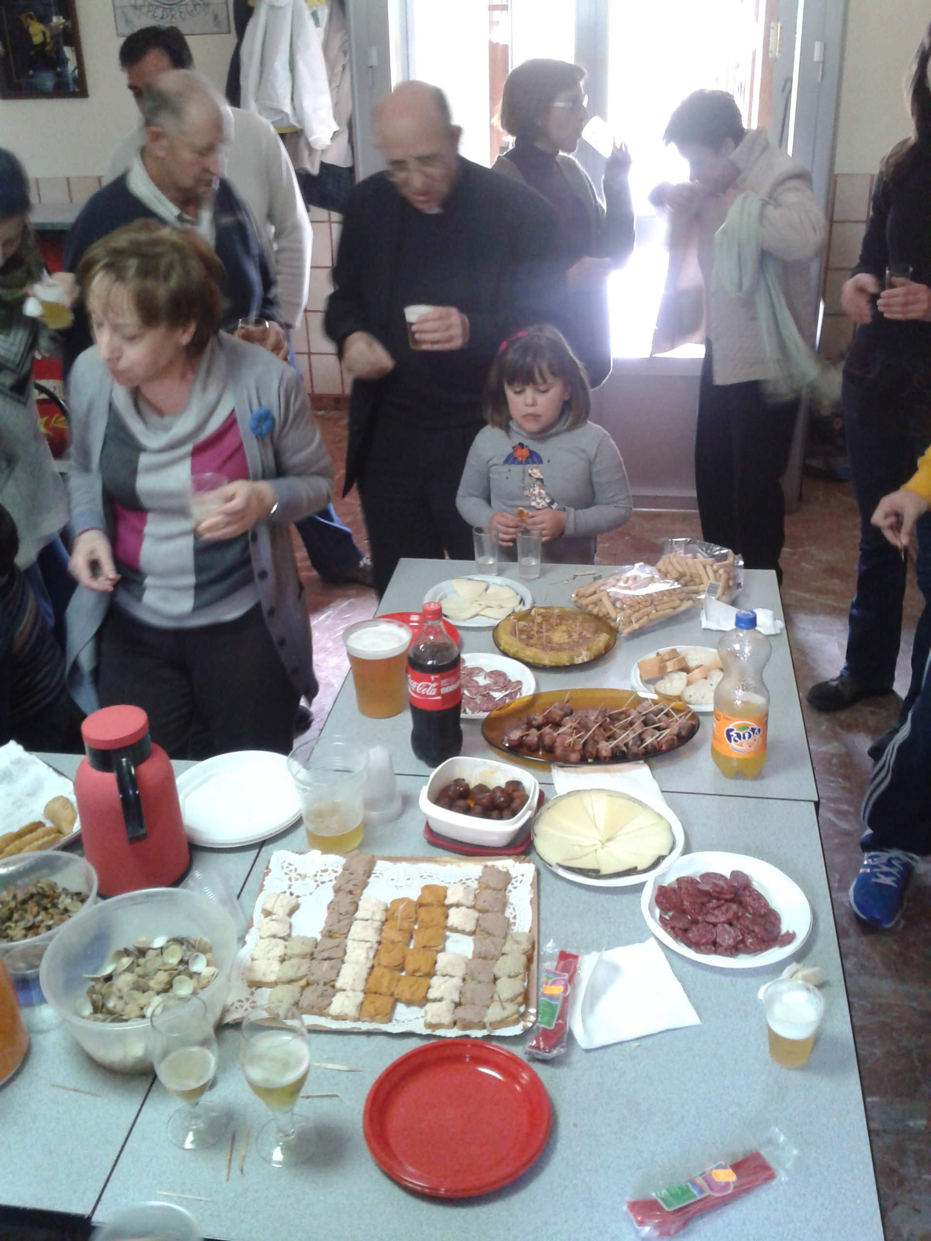 Este año quisimos cambiar un poco y decidimos celebrar el primer Vermú Torero para dar la bienvenida a las fiestas navideñas. Quedamos a las 13:45 horas en el bar y allí descubrimos la buena cocina que tenemos en nuestro pueblo, todos los asistentes pudimos picar y degustar los platos que unos y otros habíamos llevado para compartir y pasar así un buen rato riendo, charlando sobre esto y aquello … Después del café, como manda la tradición en nuestro pueblo, unos se marcharon a preparar para encender la hoguera mientras otros se fueron a recoger leña cantando villancicos por todas las casas que en ese momento estaban abiertas, recibiendo, además de su colaboración, dulces y unas cuantas sonrisas. Lo teníamos todo preparado, pero…la climatología nos impidió prender fuego a la hoguera, eso sí, ¡la encendimos en Nochevieja!